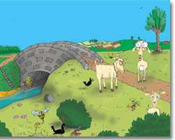 In the tale of 'Three Billy Goats Gruff', what lives under the bridge the goats must cross?