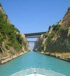 What connects the southern Greek region of Pelopponesus with the rest of the Greek mainland?