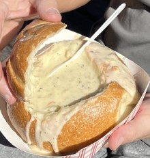 You can order this lunch dish almost everywhere. A soup/stew served in a sourdough bread. Its name?