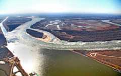 Just north of which city do the Mississippi and Missouri rivers flow together?